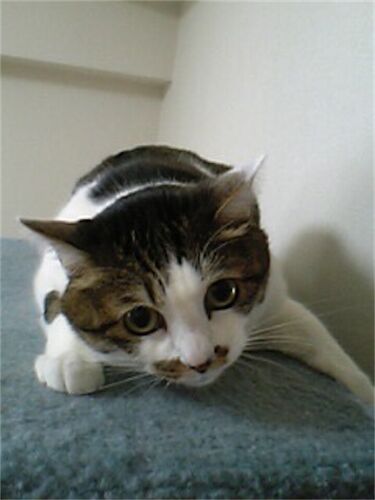 朝から防災点検がありまして、室内に知らない人が入ってきました。 猫タワー上にいた藍ちゃん、うっかり避難しそこねて 獣医さんの診察台に乗せられた時みたいにカチコチになって現実逃避してます。点検の人が帰ったとたん、タワーから飛び下り超低い姿勢で…